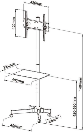 A mobil állvány LCD/LED minőségi acél konstrukcióval rendelkezik, amely maximális biztonságot biztosít. Kompatibilis akár 55 hüvelykes képernyőkkel és VESA szabvánnyal.