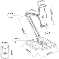 Univerzális válltartó tabletekhez, amely lehetővé teszi a kényelmes beállítást íróasztalra vagy falra szerelhetően. Kompatibilis a legtöbb 4,7'' és 12,9'' méretű tablettel, és könnyű szabályozást kínál az orientáció és a dőlésszög beállítására.