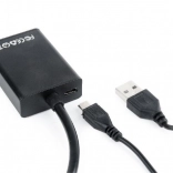 Analóg VGA jel átalakítása digitális HDMI-vé, beépített 3,5mm audio csatlakozóval, felbontás támogatása akár 1920x1080-ig.