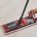 A 100% mikroszálas huzat kétféle szálat kombinál a maximális hatékonyság érdekében – a fehér, mikroaktív szálak megkötik a finom port és a zsírt, míg a Vileda piros szálai gyorsan összeszedik az egyes szennyeződéseket és morzsákat. A forgó 180°-os csukló és az alacsony profil könnyedén bejut a bútorok alá és a nehezen hozzáférhető helyekre.