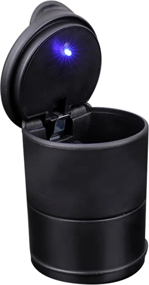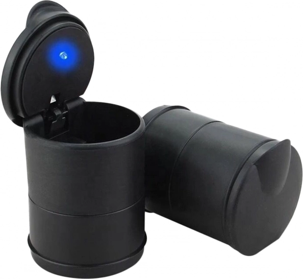 Kompakt autós hamutartó elegáns, kék LED háttérvilágítással, amely nemcsak hamutartóként szolgál, hanem kis szemetes vödrökként is használható. Az automatikus LED megvilágítás megkönnyíti a használatot éjszaka, míg a zárható fedél megakadályozza a hamu és a kellemetlen szagok terjedését. A hamutartó tökéletesen illeszkedik az autós pohártartóba, így menet közben is stabil marad.