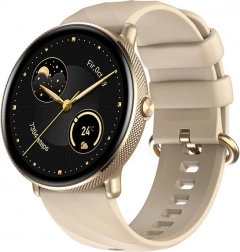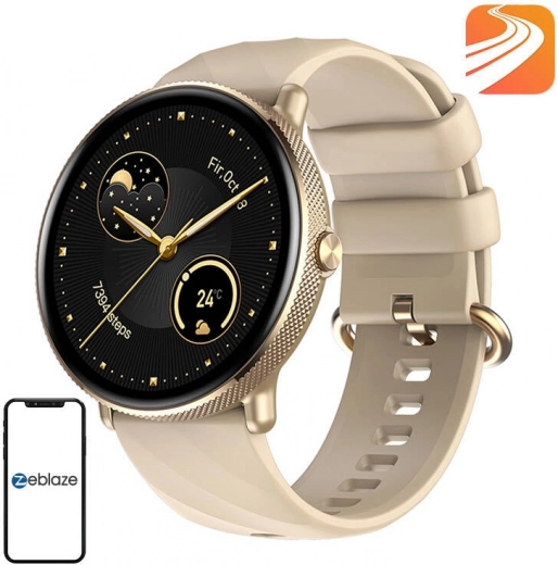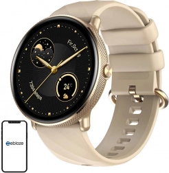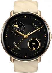 Az arany fémház és a bézs szíj modern megjelenést és stílust kölcsönöz az órának. Az érintőkijelző lehetővé teszi az egyszerű navigációt.