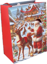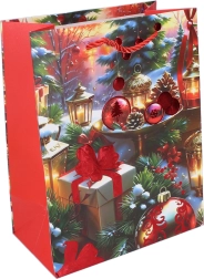 Tegye egyszerűvé a karácsonyi ajándékok csomagolását ezzel az elegáns, L méretű ajándéktáskával. A tartós anyagnak és a praktikus füleknek köszönhetően biztonságosan elbírja a nagyobb és nehezebb csomagokat is. A stílusos karácsonyi minták ünnepi megjelenést kölcsönöznek minden ajándéknak.