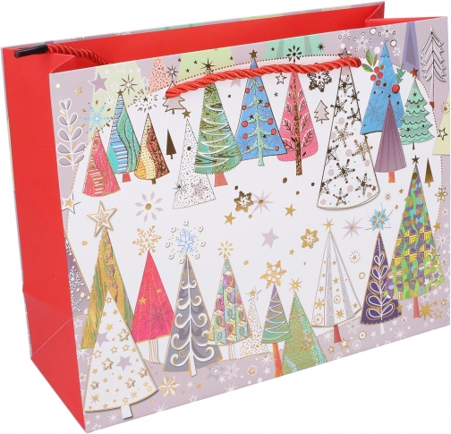 Ez a karácsonyi ajándéktáska remek választás az elegáns és gyors ajándékcsomagoláshoz. A 24,5 × 19,5 × 9,5 cm-es méret praktikussá teszi kisebb tárgyakhoz, gyertyákhoz, kiegészítőkhöz vagy kozmetikai szettekhez. Négy különböző ünnepi minta ad egyedi megjelenést minden ajándéknak.