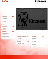 A Kingston A400 SSD lemez 480 GB kapacitással kiváló teljesítményt nyújt a készülékeinek. Az akár 500 MB/s olvasási és akár 450 MB/s írási sorrendi sebességek révén a multitasking gördülékeny, és a rendszer általános sebessége magasabb, mint valaha.