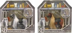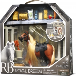 Ez a készlet tartalmazza a Ló Royal Breeds 17 cm-es méretben interaktív elemekkel, amelyek minden gyermeket lenyűgöznek. A csomag nyitható hátsó része kibővíti a játék lehetőségeit és istállóvá alakul: