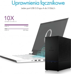 Élvezd az akár 5 Gb/s átvitelt USB 3.0-n keresztül, valamint az eSATA csatlakozás lehetőségét a maximális kompatibilitásért PC-vel és Mac-kel.