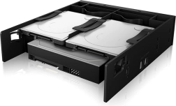 Praktikus megoldás, ha fogytán a hely. Egyetlen 5,25"-ös pozícióba akár három meghajtót is elhelyezhet – két 2,5" SSD/HDD-t (7–9,5 mm, SATA) és egy 3,5"-öst. A konstrukció gyors, biztonságos és halk szerelésre készült, kiemelt megbízhatósággal és kényelemmel.