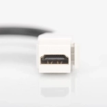 A HDMI 2.0 verzió modern A/V alkalmazásokhoz alkalmas, nagy felbontással és gördülékeny kép- és hangátvitellel. A modulon belüli rövid kábel csökkenti a csatlakozók terhelését és megkönnyíti a kezelést a szerelvénydobozok szűk tereiben.