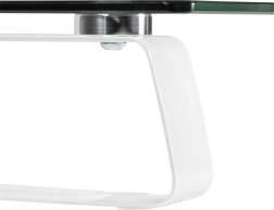 Az áttetsző, 5 mm vastag üveg és a minimalista vonalak optikailag könnyítik az asztalt, és egyben helyet teremtenek az emelő alatt a billentyűzetnek vagy a dokumentumoknak.