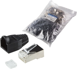 Ezek a csatlakozók ideálisak professzionális és otthoni hálózati megoldásokhoz egyaránt, ahol kulcsfontosságú az elektromágneses zavarokkal szembeni ellenállás. A készlet 100 darabot tartalmaz, ami elegendő csatlakozót biztosít nagyobb kábelezési projektekhez.