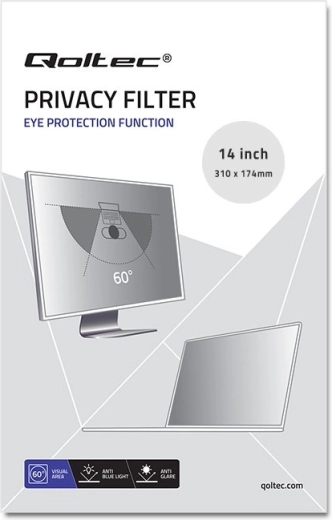Védje az érzékeny adatokat és magánszféráját a QOLTEC adatvédelmi szűrővel 14" 16:9 kijelzőkhöz. A mikrolamellás technológiának köszönhetően a kép csak szemből olvasható, oldalirányból elsötétedik. A szűrő emellett tükröződésmentes felületet kínál, csökkenti a kék fényt a kisebb szemfáradtság érdekében, és megóvja a kijelzőt a karcolásoktól és az ujjlenyomatoktól. A felszerelés gyors és egyszerű – keretklipszekkel vagy átlátszó ragasztócsíkokkal. Ideális terepmunkához, irodákba, hivatalokba és pénzintézetekbe, a GDPR-nek megfelelően.