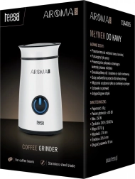 A TEESA Aroma G50 elektromos kávédaráló praktikus segítőtárs minden presszó- és filterkávé-rajongónak. Erős motorjának és tartós rozsdamentes acél pengéinek köszönhetően a kávészemeket gyorsan és egyenletesen őrli, így az ital megőrzi teljes aromáját és ízét. Minimalista, hengeres forma modern, fehér kivitelben, amely bármely konyhába illik.