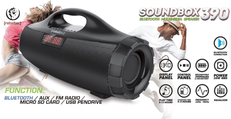 Élvezze a kiváló hangzást a Bluetooth hangszóró SoundBox segítségével, amely okostelefonnal vagy gombokkal is vezérelhető.