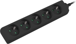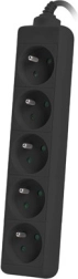 Hosszabbító kábel 1,5 m, fekete, 5 aljzat
