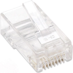 Ez az RJ45 kategória 5e csatlakozó tömör vezetékhez készült, aranyozott érintkezőket kínál, amelyek biztosítják a stabil kapcsolatot és a hosszú élettartamot. Standard 8P8C kialakításával teljes mértékben kompatibilis minden RJ45 hálózati csatlakozással. A csatlakozó kerek kábelhez alkalmas, és három tüskés végződéssel van ellátva a szilárd csatlakozás érdekében.