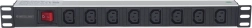 19" rack tápcsík 1U 110V-250V/10A 8 db C13 aljzat 2 m kábel