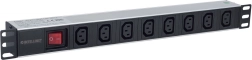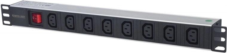 19" rack tápegység 1U, 110V-250V/10A, 8 db C13 aljzattal, 2 m hosszú kábellel.
