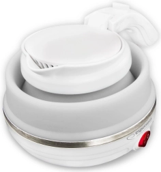A kompakt és könnyen hordozható ESPERANZA Niagara vízforraló összecsukható szilikon házzal ideális utazáshoz, kis konyhákba és kempingezéshez. 0,5 l űrtartalmat, gyors forralást és túlmelegedés elleni védelmet kínál. Az ergonomikus fogantyú, a felnyitható fedél és a megvilágított kapcsoló kényelmessé teszik a használatot, miközben helyet és energiát takarít meg.