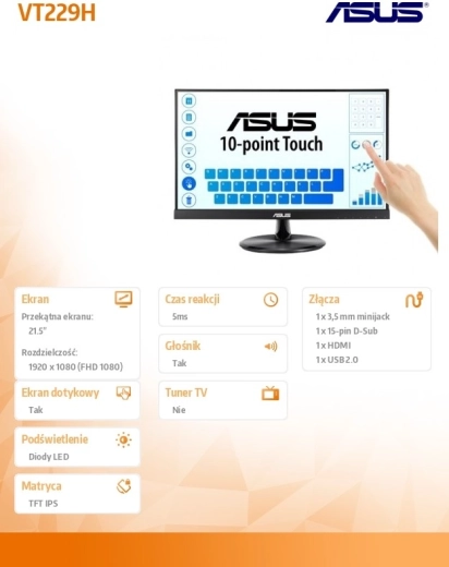 A monitor éles és élénk képet biztosít az FHD felbontással és az IPS technológiával, amely bármilyen szögből hűséges és stabil színeket garantál. Az érintőfelület 10 pontos érintést támogat, amely közelebb hozza az interaktív alkalmazásokhoz.