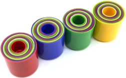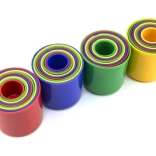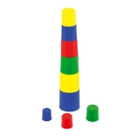 Minden pohárnak eltérő a színe és a mérete. Torony építésekor vagy egymásba illesztéskor a gyerekek megtanulják megkülönböztetni a színeket, méret szerint sorba rendezni és megérteni a sorrendiséget.