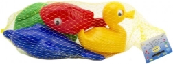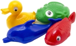 Aranyos, vízi játékokhoz való szett, amely 4 műanyag állatkát tartalmaz – egy sárga kiskacsát, egy kék delfint, egy zöld békát és egy piros halacskát. Ideális kádba és medencébe, és alkalmas 0+ korú gyermekeknek.