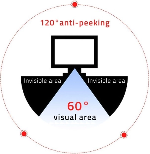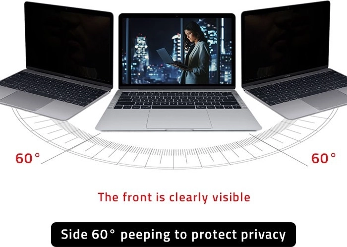 A szűrő a 30 fokos szög alatti láthatóság blokkolásával védi kijelzőjét a kíváncsi pillantásoktól.