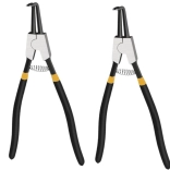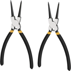 A készlet egyenes és hajlított fogókat tartalmaz belső és külső biztosítógyűrűkhöz – így mindig kéznél van a megfelelő szerszám.