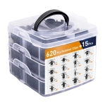 Autós rögzítő készlet tartalmaz 620 elemet a szabványos méretekben, ami nélkülözhetetlen eszközzé teszi minden műhelyben vagy garázsban. A háromszintes szervező lehetővé teszi a könnyű elrendezést és a gyors hozzáférést a rögzítőkhöz.