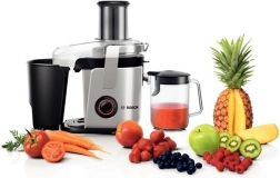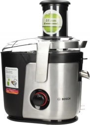 A Bosch gyümölcscentrifugával elkerülheti a gyümölcsök és zöldségek szeletelésének szükségességét a 84 mm átmérőjű nagy bemeneti nyílásnak köszönhetően. Kerámia kése magas hatékonyságot és könnyű tisztítást biztosít. Akár 1,5 liter lé kinyerhető egyetlen folyamat során.