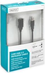 A 15 m hosszú aktív USB-A – USB-A (apa/anya) hosszabbítókábel ideális nyomtatók, kamerák, billentyűzetek, egerek és egyéb USB eszközök olyan csatlakoztatásához, amelyek távolabb vannak a számítógéptől. A beépített elektronika stabil jelet és a USB 2.0 High Speed szabvány szerinti, akár 480 Mb/s sebességet biztosít.