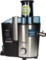 A praktikus DripStop funkció tisztán tartja a konyhapultot – a facsarás befejezése után egyszerűen lezárja a kifolyót, így megakadályozza a csepegést. A 700 W-os motor és a 2 sebesség a puha gyümölcsökkel és a kemény gyökérzöldségekkel is megbirkózik. A biztonsági retesz gondoskodik róla, hogy a készülék csak helyes összeszerelés esetén induljon el.