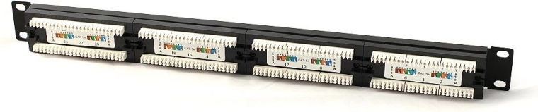24 RJ45 port előlapi címkékkel a világos jelöléshez, így 19"-os rackben is átlátható és könnyen kezelhető a csatlakozások rendszerezése.
