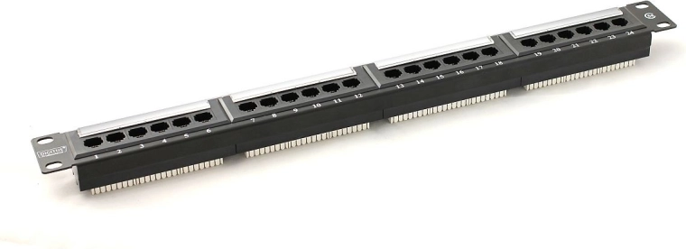 A DIGITUS 19"-os, 24 portos, Cat.5e kategóriájú patch panel ideális választás strukturált kábelezéshez szerverhelyiségekben, irodákban és adatelosztókban. 1U kialakítása helytakarékos a rackben, miközben magas megbízhatóságot és egyszerű csatlakozáskezelést nyújt.