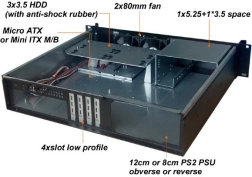 Kompakt rackes PC ház 19" állványokhoz és elosztószekrényekhez, mindössze 2U magas kivitelben – ideális szerverekhez és otthoni laborkörnyezetekhez. Támogatja a Micro ATX és Mini ITX alaplapokat, kínál egyszerű 19" rackbe szerelést, előlapi jelzőfényeket, gombokat és 2× USB-t, 1× külső 5,25" bővítőhelyet, 4× belső 3,5" meghajtóhelyet és 2× 80 mm-es elülső ventilátort a megbízható hűtésért.