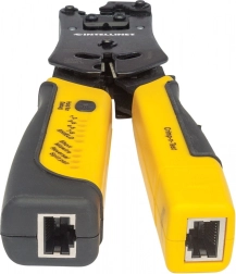 Professzionális, univerzális csatlakozópréselő eszköz vágási és szigeteléseltávolítási funkciókkal, valamint kábelteszterrel.