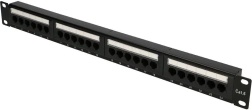 A patch panel tartós fémből készült, ami biztosítja a strapabíróságot és a stabilitást a rackbe szerelés során.