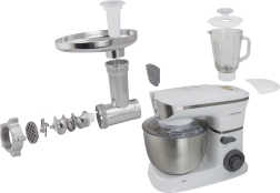 Tartalmaz egy húsdarálót és egy keverőt, ami kibővíti az ételek elkészítésének lehetőségeit. Képes krémes levesek, darált húsos ételek, rakott tészták, saláták, palacsinták, muffinok, italok vagy tökéletesen felvert tejszínhab készítésére. Ez a többfunkciós robot ideális segítség a mindennapi főzéshez, és hozzájárul az egészséges és finom ételek elkészítéséhez az egész család számára.