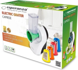 Elektromos Esperanza szeletelő ideális gyümölcs, zöldség, kemény sajt, csokoládé, dió és morzsa készítésére. Az öt cserélhető fejegységével a szeletelt termékek alakját és vastagságát az adott ételhez igazíthatja.