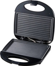 A tapadásmentes felület megakadályozza az odaégést és megkönnyíti a tisztítást. A bordázott lapok látványos rácsnyomatot és ropogós kérget adnak a szendvicseknek.
