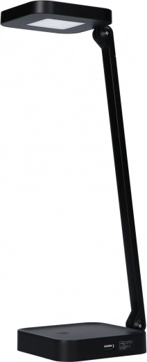 Modern asztali lámpa elegáns fekete dizájnnal, állítható karral és téglalap alakú fejjel, amely célzott világítást biztosít. Stabil alapja biztonságot és rugalmasságot nyújt használat közben. A stílusos minimalista megjelenés ideálissá teszi bármilyen munkaasztalhoz, és a beépített USB port lehetővé teszi a töltést elektronikai eszközök számára. Ez a lámpa ötvözi a dizájnt és a funkcionalitást, így nélkülözhetetlen eszközzé válik a mindennapi munkafeladatokhoz.