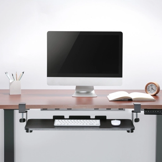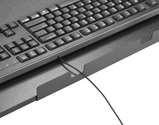 Az univerzális MC-839 asztal alá szerelhető billentyűzettartó polc praktikus, az asztallap alatti hellyel bővíti a munkaterületét. Az asztali szorítókkal történő rögzítésnek köszönhetően a telepítés gyors és szerszám nélkül elvégezhető. A kéz ergonomikus pozíciója, a billentyűzetnek és egérnek elegendő hely, valamint a helytakarékosság az asztallapon kényelmes, átlátható munkát biztosít nap mint nap.