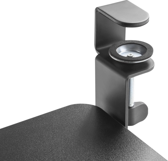Az MC-839 asztal alatti polc könnyen a lap széléhez rögzíthető erős szorítókkal, így nem szükséges fúrni és szerszámot használni. A széles felület elegendő helyet biztosít a billentyűzetnek és az egérnek, ezáltal felszabadítja a munkafelületet és javítja az ülés ergonómiáját.