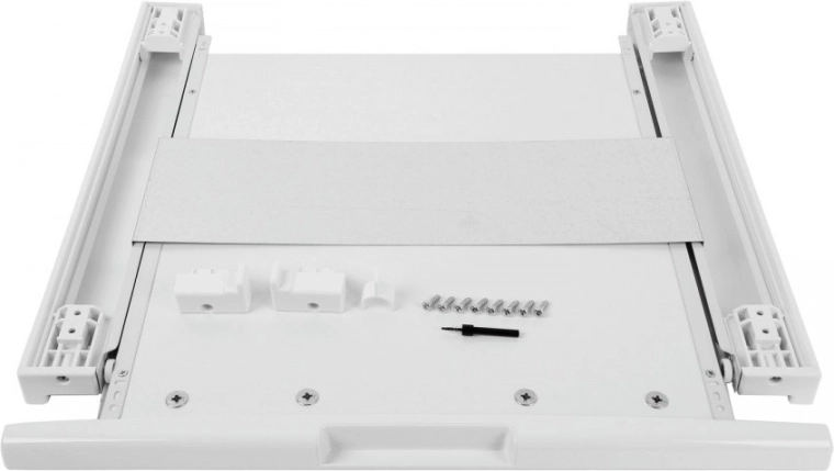 Nem kell többé hajolgatni és bemászni a szárítógépbe! Ez a praktikus összekötő elem a kihúzható polccal nemcsak megkönnyíti a munkát, hanem ideális megoldás szűk helyekre is. Könnyű összeszerelés a készlet részét képező csavarokkal, amelyek biztosítják a megbízható stabilitást.