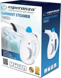 A ESPERANZA Tweed kézi ruhagőzölő praktikus segítség a gyűrődések gyors kisimításához és a textíliák felfrissítéséhez vasalódeszka nélkül. 60 másodperces bemelegedés, erős, 15 g/perc gőzkibocsátás és egyszerű kezelhetőség gondoskodik a tiszta, ápolt ruhákról és lakástextilekről pillanatok alatt.
