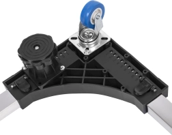 Az alátét négy integrált vízszintezővel és magasságállítással van felszerelve, ami pontos beállítást tesz lehetővé. Ideális választás a készülékek mozgatására és stabil elhelyezésére.