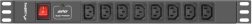 Professzionális LANBERG rack PDU 19" szekrényekhez, 1U magas kivitelben, amely megbízható áramelosztást biztosít szerverekhez és hálózati eszközökhöz. 8× IEC C13 aljzatot, IEC C20 (16 A) bemenetet, túlfeszültség-védelmet és állapotjelzős automata megszakítót kínál. A masszív alumínium ház és a 2 m-es tápkábel biztonságos működést garantál teljes terhelés mellett is.