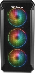 A GENESIS Irid 503 ARGB V2 egy átgondolt micro tower ház Micro‑ATX és Mini‑ITX alaplapokhoz. A perforált előlap és a négy előre telepített 120 mm-es ARGB ventilátor kiváló légcserét biztosít, míg az oldalsó edzett üveg láttatni engedi a komponenseket és a világítást. Az integrált ARGB vezérlő (5V 3-tűs) lehetővé teszi az effektek külön beállítását vagy az alaplappal való szinkronizálását; a 4-tűs PWM csatlakozónak köszönhetően a fordulatszám terhelés alapján is szabályozható.