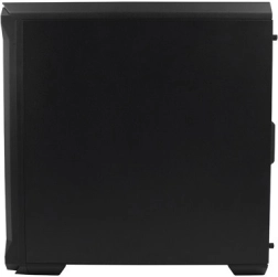 Az edzett üveg oldallap kiemeli a komponenseket, míg az elülső mesh panel javítja a friss levegő beáramlását és alacsony hőmérsékletet biztosít.