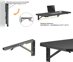 Univerzális, összecsukható fali konzolok, amelyekre polc szerelhető. A konzolkészlet akár 50 kg terhelést is elbír. Az ötletes és praktikus mechanizmus lehetővé teszi a konzolok lehajtását és a polc függőleges helyzetbe engedését, ami szükség esetén helyet takarít meg.